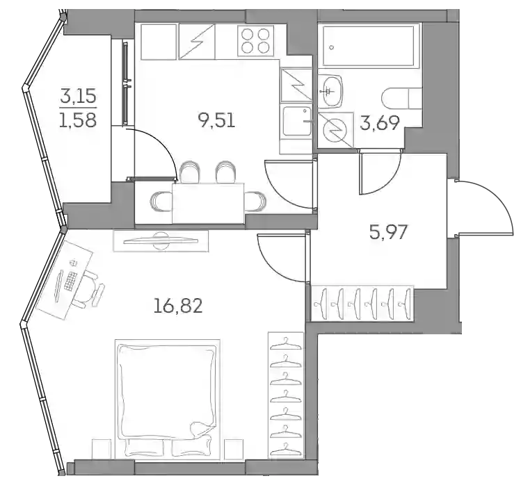 В проекте представлено множество планировочных решений — от студий до просторных 3х-комнатных квартир. Все лоты сдаются с подчистовой отделкой, высотой потолков до 3,5 метров и панорамными окнами.
