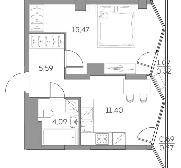 16 153 884 ₽1-к.квартира, 40.1 м², 27 эт.