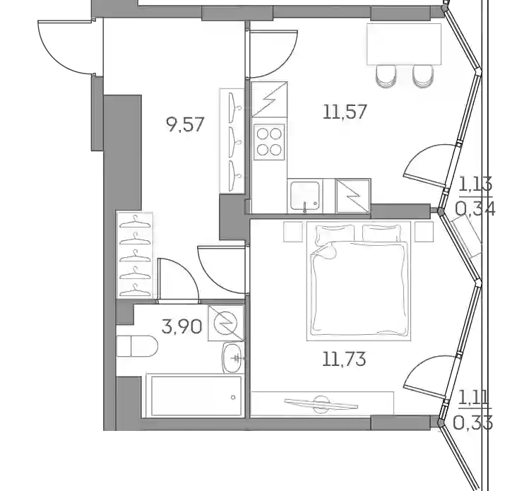 16 950 859 ₽1-к.квартира, 34.4 м², 39 эт.