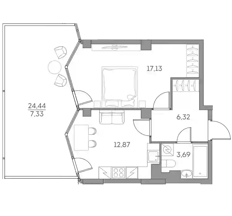 17 513 458 ₽1-к.квартира, 40.7 м², 45 эт.