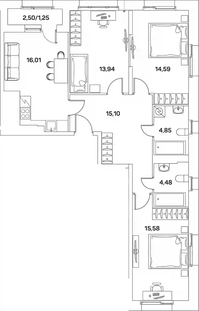 4-к.квартира, 84.55 м², 13 эт. в ЖК Аквилон Beside 2.0 Корпус 1