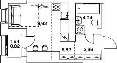 Студия, 22.64 м², 20 эт. в ЖК Аквилон Beside 2.0 Корпус 1
