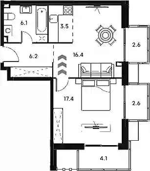 В корпусах 1 и 2 предлагаются апартаменты для постоянного проживания - от компактных студий до просторных двух- и трехкомнатных планировок европейского формата. Апартаменты сдаются с отделкой White box и панорамным остеклением. Есть видовые апартаменты, из некоторых предусмотрен выход на благоустроенную крышу.