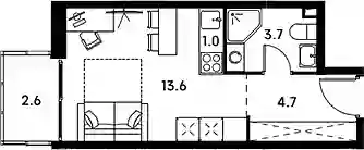 9 650 870 ₽Студия, 21.6 м², 13 эт.