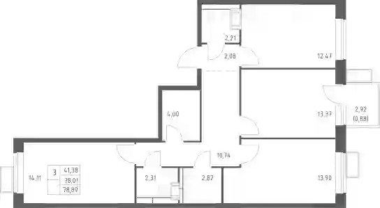 20 421 374 ₽3-к.квартира, 79.17 м², 3 эт.
