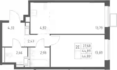 2-к.квартира, 44.89 м², 7 эт. в ЖК Алхимово Корпус 16