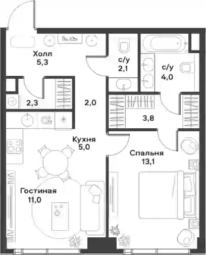 2-к.квартира, 48.6 м², 2 эт. в ЖК ALIA Корпус 1 оч.4