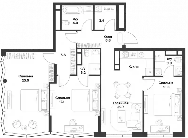 86 772 800 ₽4-к.квартира, 112.4 м², 27 эт.