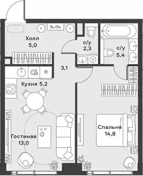 2-к.квартира, 48.8 м², 32 эт. в ЖК ALIA Корпус K2