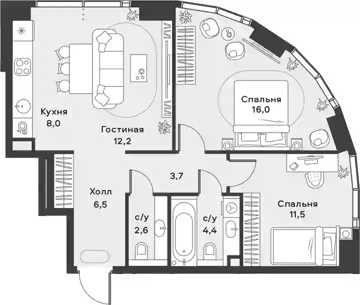 3-к.квартира, 64.9 м², 32 эт. в ЖК ALIA Корпус K2