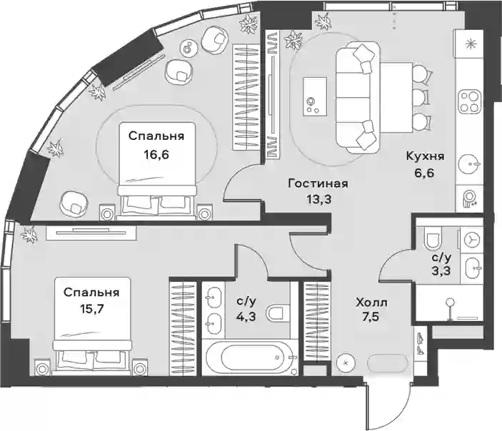 3-к.квартира, 67.3 м², 4 эт. в ЖК ALIA Корпус K2