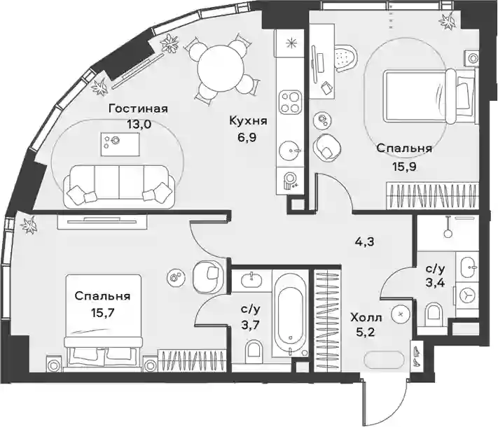 34 426 800 ₽3-к.квартира, 65.7 м², 24 эт.