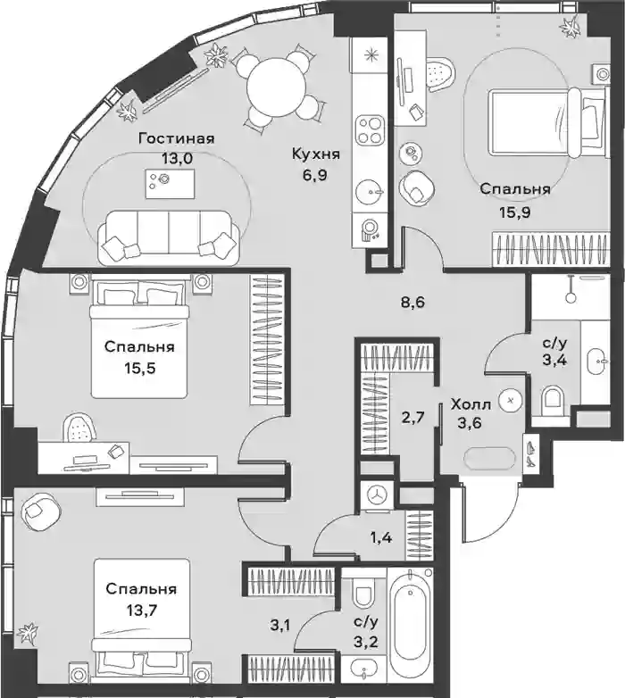 58 379 895 ₽4-к.квартира, 93.45 м², 13 эт.