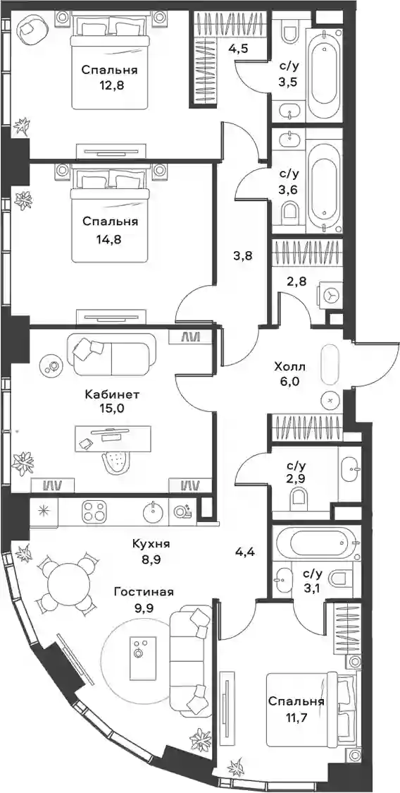59 122 000 ₽4-к.квартира, 101.5 м², 22 эт.