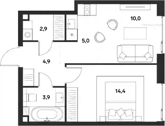 24 389 680 ₽2-к.квартира, 44.9 м², 19 эт.