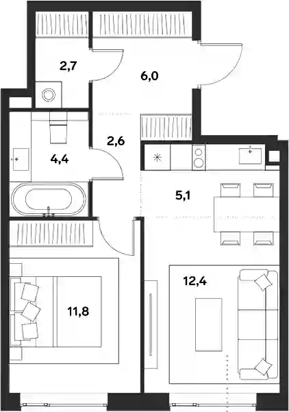 28 312 200 ₽2-к.квартира, 42 м², 26 эт.