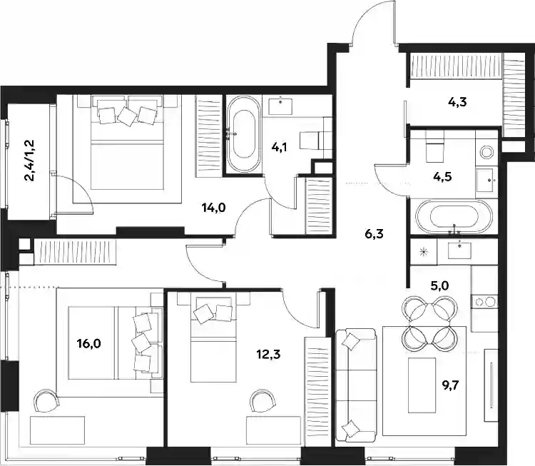 4-к.квартира, 81.9 м², 23 эт. в ЖК ALIA Корпус К3