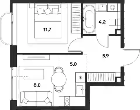 22 362 480 ₽2-к.квартира, 34.8 м², 2 эт.