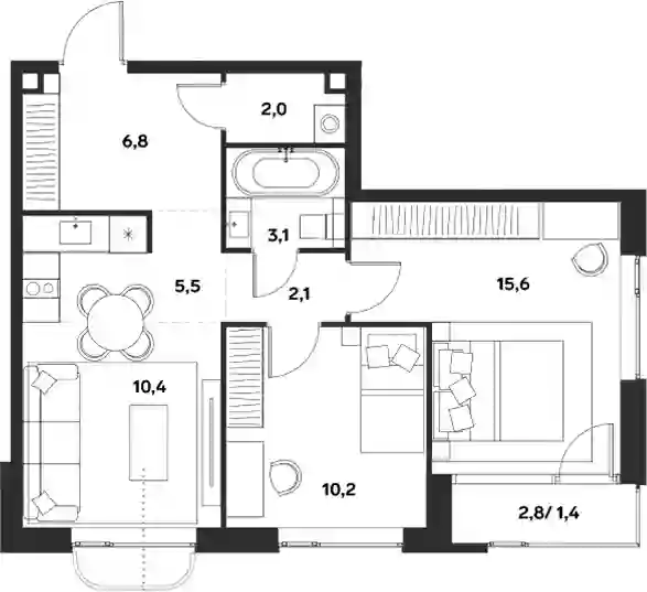 28 441 510 ₽3-к.квартира, 55.7 м², 2 эт.