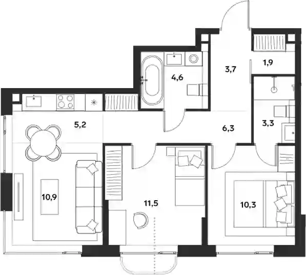 32 990 880 ₽3-к.квартира, 60.7 м², 3 эт.
