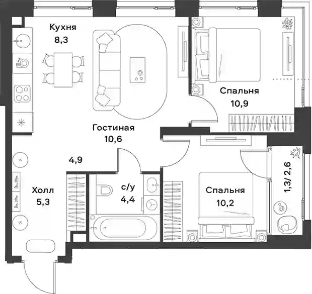 3-к.квартира, 54.6 м², 16 эт. в ЖК ALIA Корпус К6