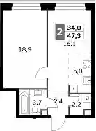 39 984 000 ₽2-к.квартира, 47.04 м², 9 эт.