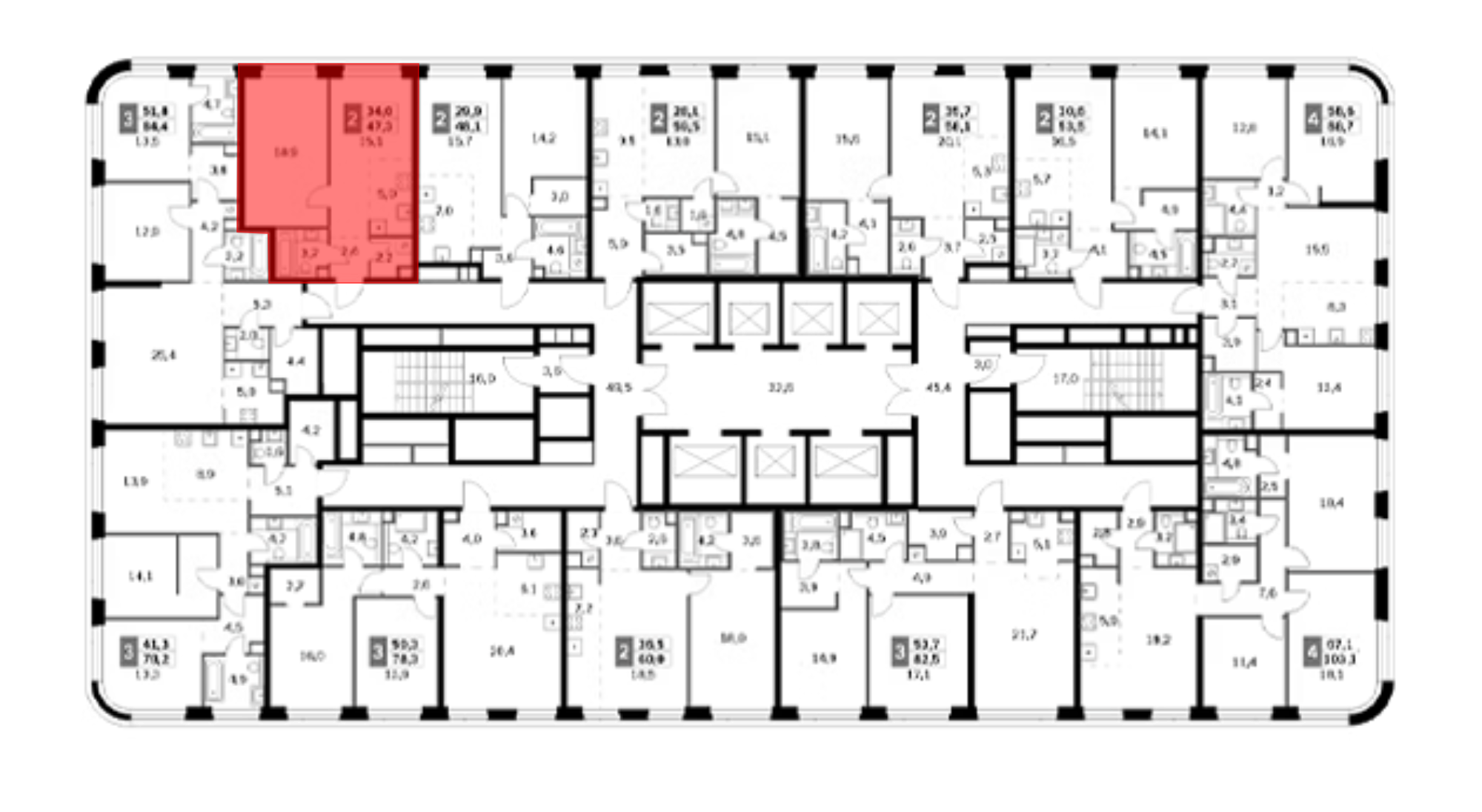 39 584 125 ₽2-к.квартира, 47.5 м², 33 эт.