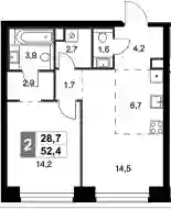 2-к.квартира, 52.4 м², 2 эт. в ЖК Amber City Корпус 4