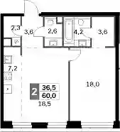 33 734 400 ₽2-к.квартира, 60.24 м², 13 эт.