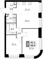 3-к.квартира, 68.9 м², 27 эт. в ЖК Amber City Корпус 4