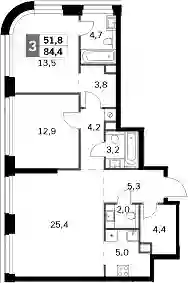 3-к.квартира, 84.4 м², 37 эт. в ЖК Amber City Корпус 4
