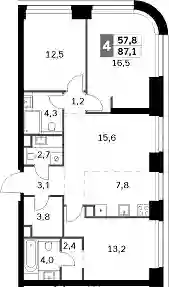 45 267 154 ₽4-к.квартира, 86.7 м², 15 эт.