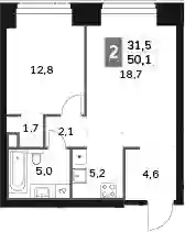 40 236 840 ₽2-к.квартира, 50.4 м², 7 эт.