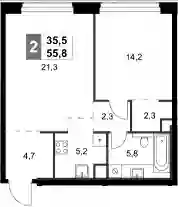 30 821 238 ₽2-к.квартира, 59.5 м², 35 эт.