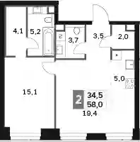 58 м2