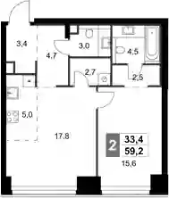 28 517 528 ₽2-к.квартира, 59.2 м², 2 эт.