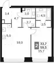 33 345 410 ₽2-к.квартира, 58.9 м², 14 эт.
