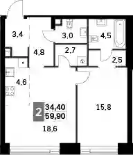 59.9 м2
