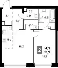 32 236 500 ₽2-к.квартира, 58.9 м², 9 эт.