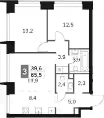 39 189 838 ₽3-к.квартира, 68.9 м², 27 эт.