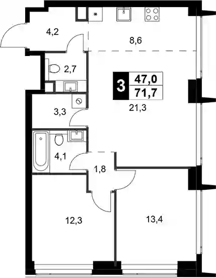 61 027 455 ₽3-к.квартира, 71.7 м², 39 эт.