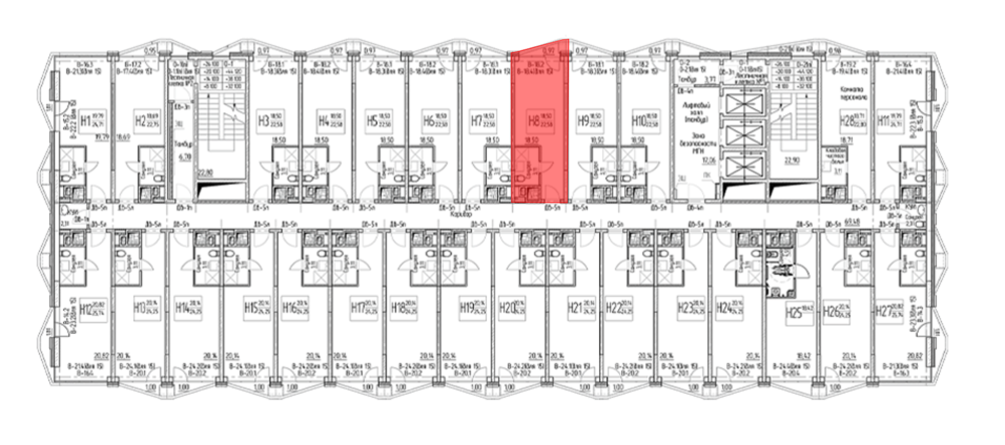 В проекте предложено 405 гостиничных номеров площадью от 22 до 25 кв. метров с возможностью объединения. Есть студии с панорамными окнами в пол и высокими потолками от 3 до 4,8 метра с возможностью организации антресоли. На 1 и 2 этажах расположены помещения свободного назначения, помещения на 1 этаже имеют отдельный вход. Каждый номер в комплексе оснащен отдельным балконом. Номера сдаются без отделки, но есть возможность заказать ремонт и меблировку. Апартаменты подходят как для личного проживания, так и для сдачи в краткосрочную аренду. В комплексе предусмотрен круглосуточный отельный сервис. Отельный оператор предоставляет услуги по встрече и размещению гостей, ремонту, комплектации и полному обслуживанию номеров.