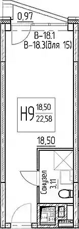 8 497 663 ₽Студия, 23.25 м², 15 эт.