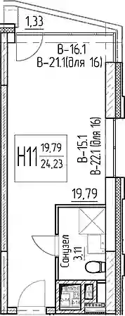 8 166 377 ₽Студия, 21.61 м², 16 эт.