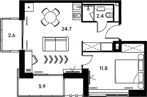 2-к.квартира, 38.9 м², 22 эт. в ЖК Апарт-отель Аквилон Signal Корпус 3