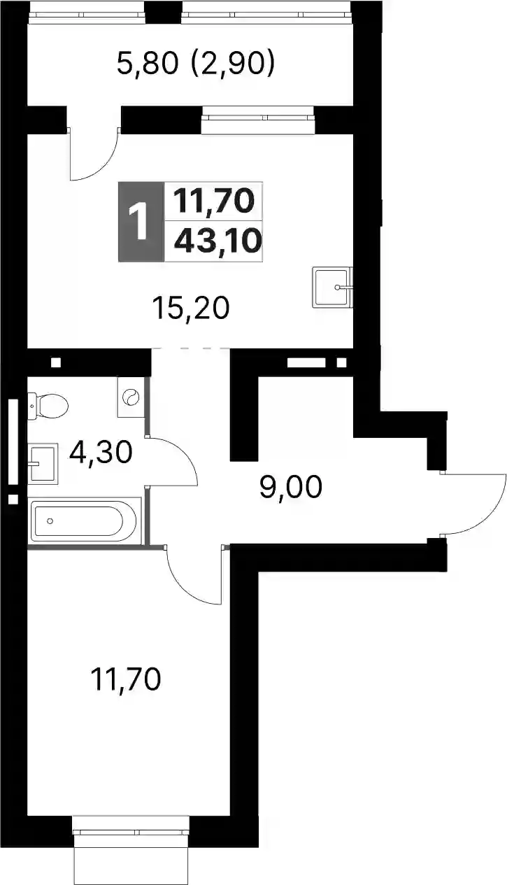 9 072 784 ₽1-к.квартира, 41.3 м², 5 эт.