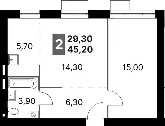 2-к.квартира, 45.2 м², 5 эт. в ЖК Апрелевка Клаб Корпус 1