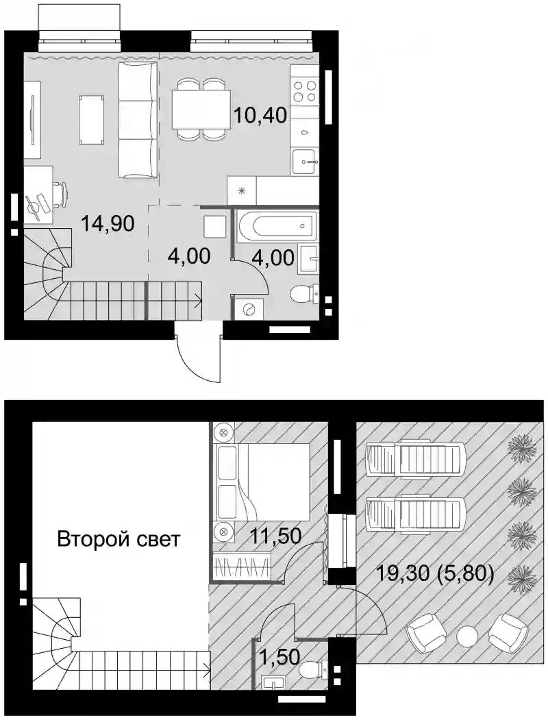 10 804 500 ₽Свободная планировка, 44.14 м², 2 эт.