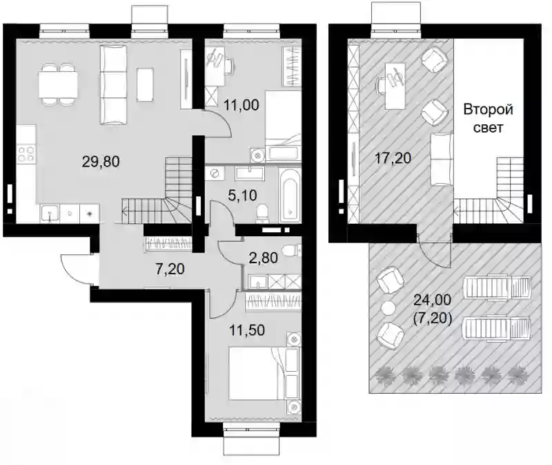 В комплексе предлагаются квартиры с 1–2 комнатами в евроформате с кухней-нишей, а также двухуровневые квартиры с террасой на крыше. Высота потолков в стандартных квартирах составляет 2,68 м, в двухуровневых — 4,78 м. В помещениях установлены увеличенные окна. Жилье передается без межкомнатных перегородок, но с капитальными стенами, входной дверью и остеклением. Подведены коммуникации, электричество заведено до распределительного щитка, установлен котел и радиатор.