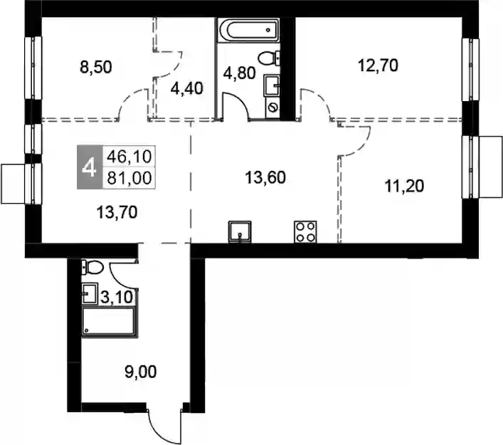 10 480 165 ₽4-к.квартира, 81 м², 4 эт.